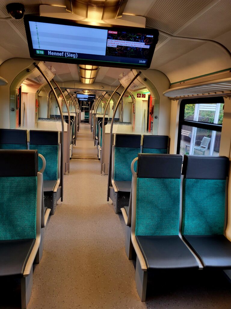 Mein Kommentar: Bisher fahre ich die „alten“ Züge der Baureihe 423 und die „neuen“ 424. Ich war nun sehr angenehm überrascht von den renovierten Zügem der BR 423. Solide Technik, schneller Fahrgastwechsel und neue Fahrgastkomfort! Dazu unten ein paar Bilder. Übrigens gibt es im Kölner Raum keine 1.Klasse, auch wenn die Züge eine solche Markierung außen haben. Leider kann man mit dem 424 nur schwer den Fahrplan halten,- u.a. da die Abläufe am Bahnsteig deutlich mehr Zeit brauchen als beim 423 und man dadurch weniger Pufferzeiten hat. Ich freue mich für jede Fahrt, die ohne den 424 stattfindet 🙂