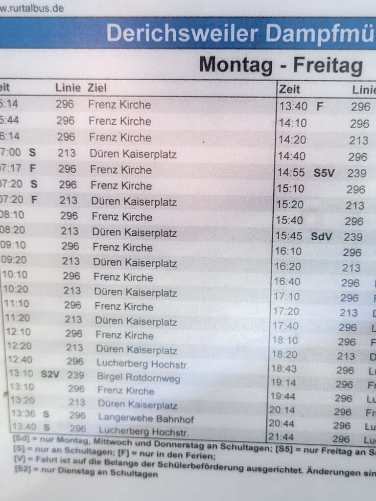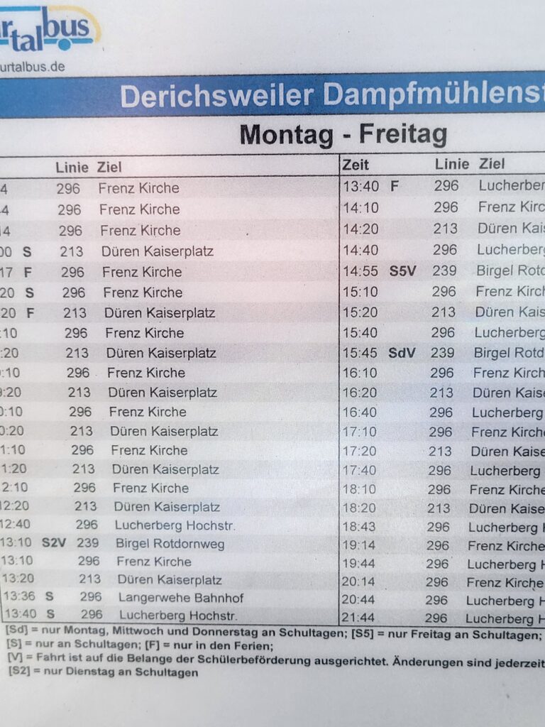 Update 21.3.26: Gestern habe ich mich an einigen Haltestellen in Düren-Derichsweiler umgesehen und dabei festgestellt, dass an den Halten Derichsweiler-Abzweig keine Aushänge existieren.