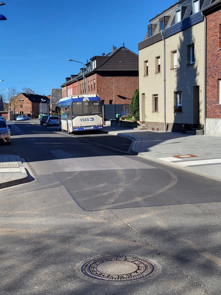 Der Laufweg ab Sommer letzten Jahres über die Derichsweilerstraße von Gürzenich nach Derichsweiler machte Parkverbote in engen Bereichen notwendig, war aber trotzdem für die Busfahrer*innen anspruchsvoll.